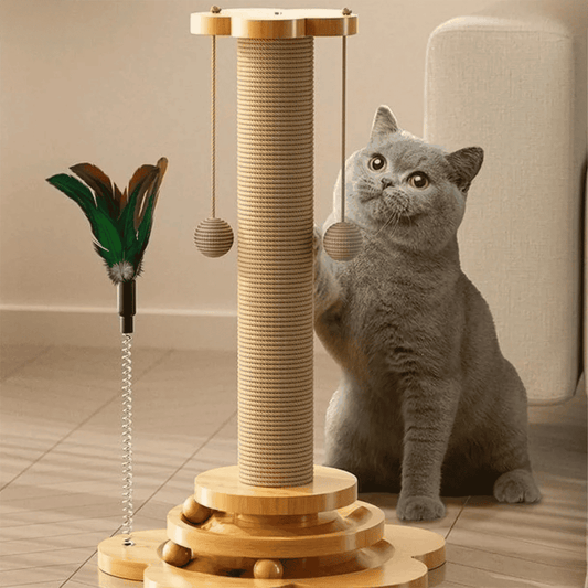 Cat Scratch Post 9,5 x 18" | Natural Instinct Training Toy w/ Hanging Balls, Cat Scratcher
